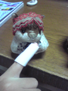 机の端でコギツネ