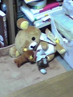 何気に見たらリラっとしてるクマが非常に崩れた恰好してるのでコギツネを添えてみた。
