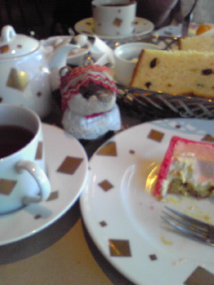 ランチセットだったのでサラダ・デザート付きです。サロンスペースは2階で1階で販売してます。そこで見るとこのデザートのケーキは今月の新作みたいでした。